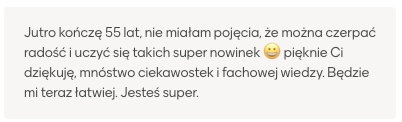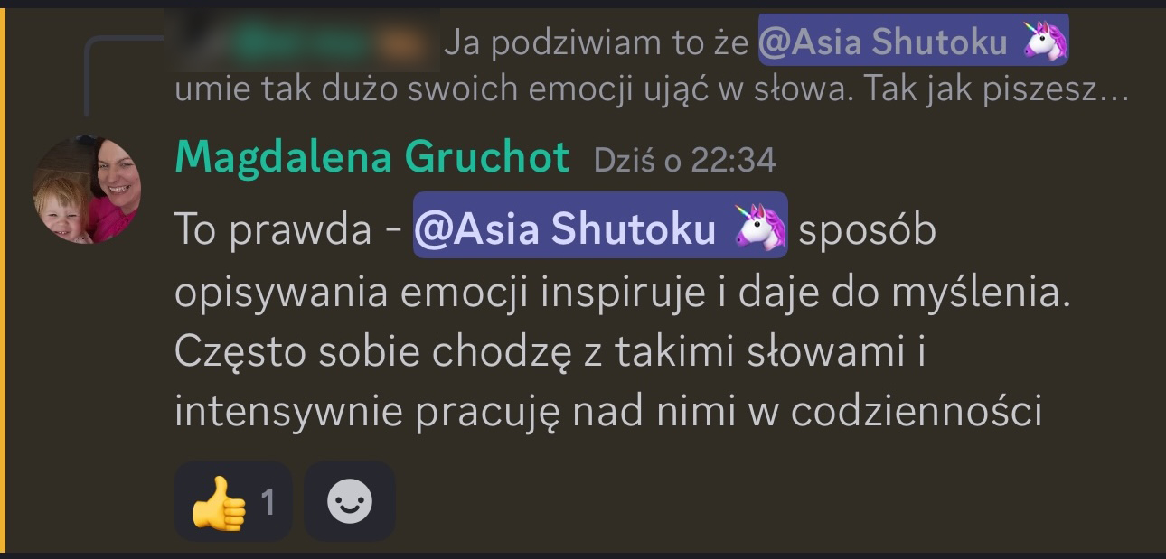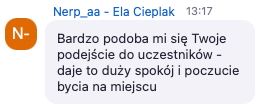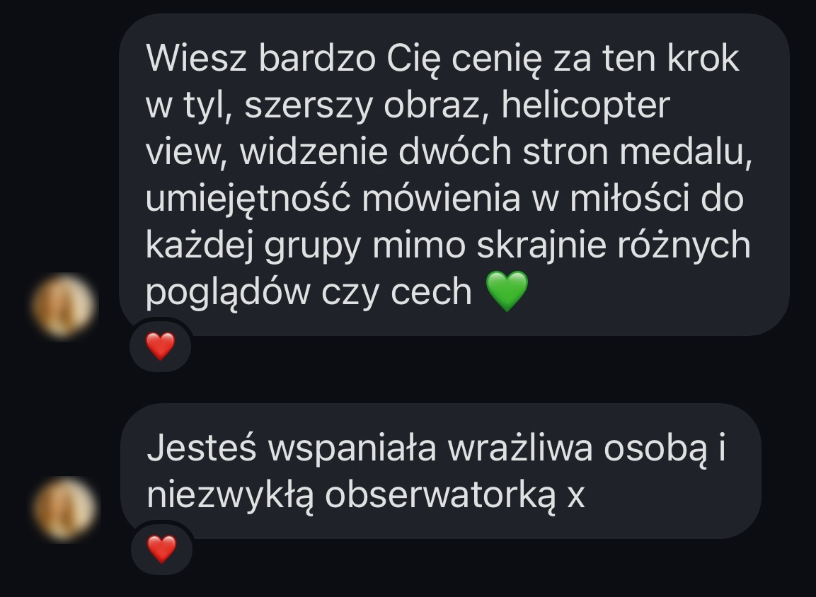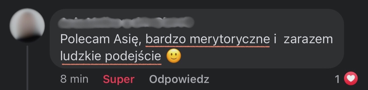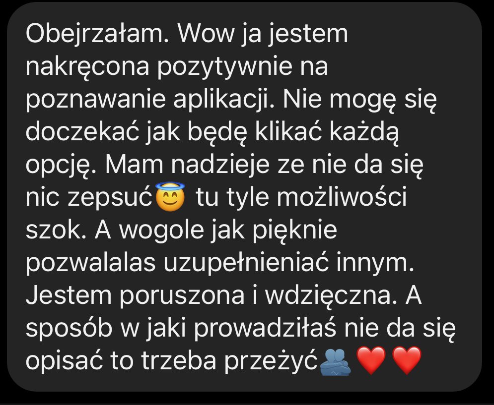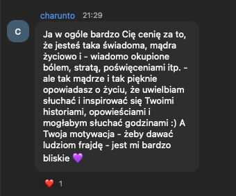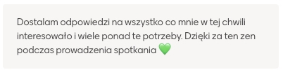 Lubię głębokie rozmowy i odkrywanie nowych ścieżek, które przybliżają mnie i bliskie mi osoby do sedna siebie.