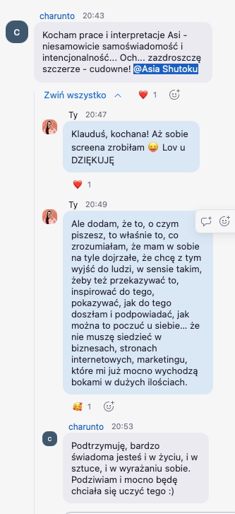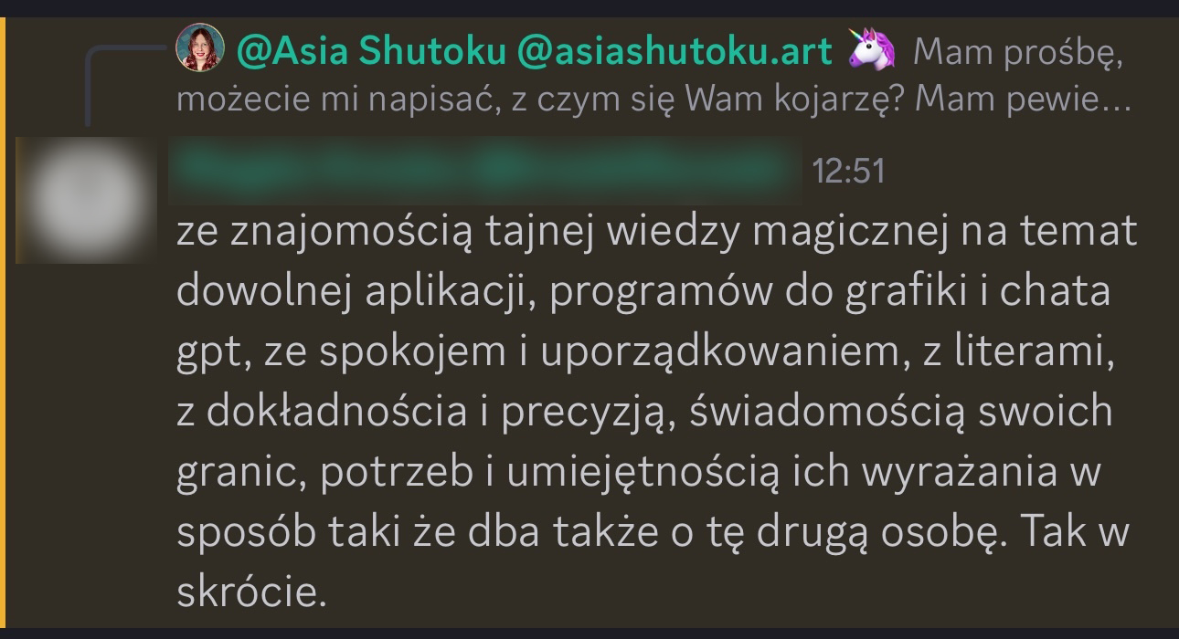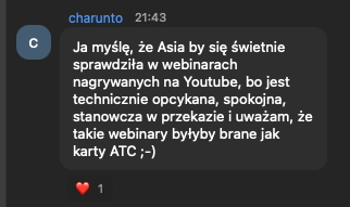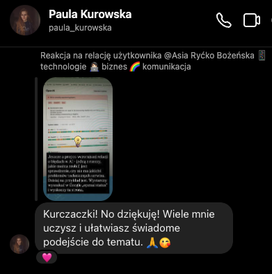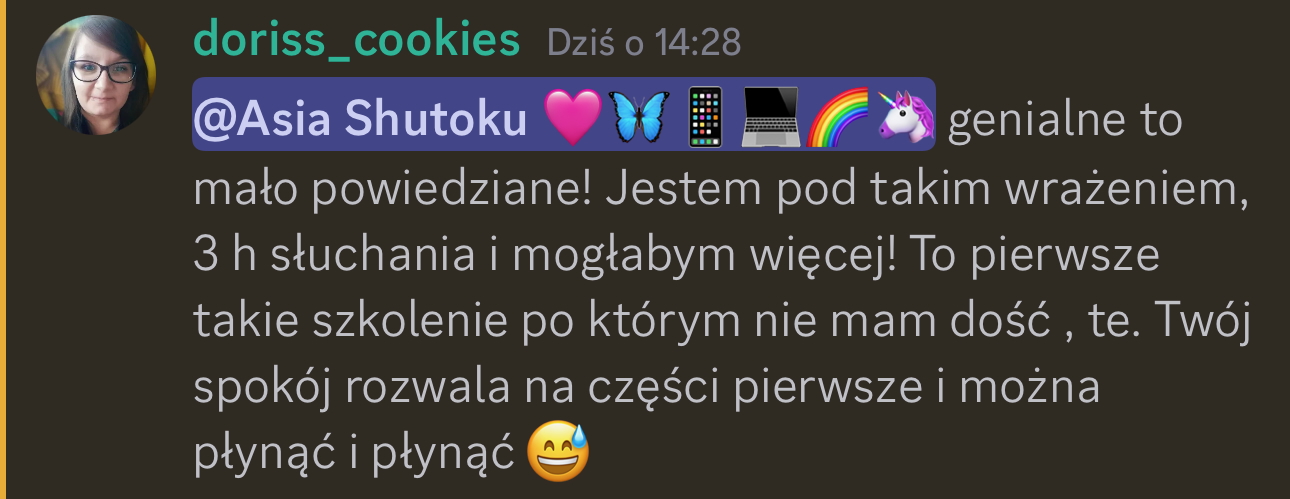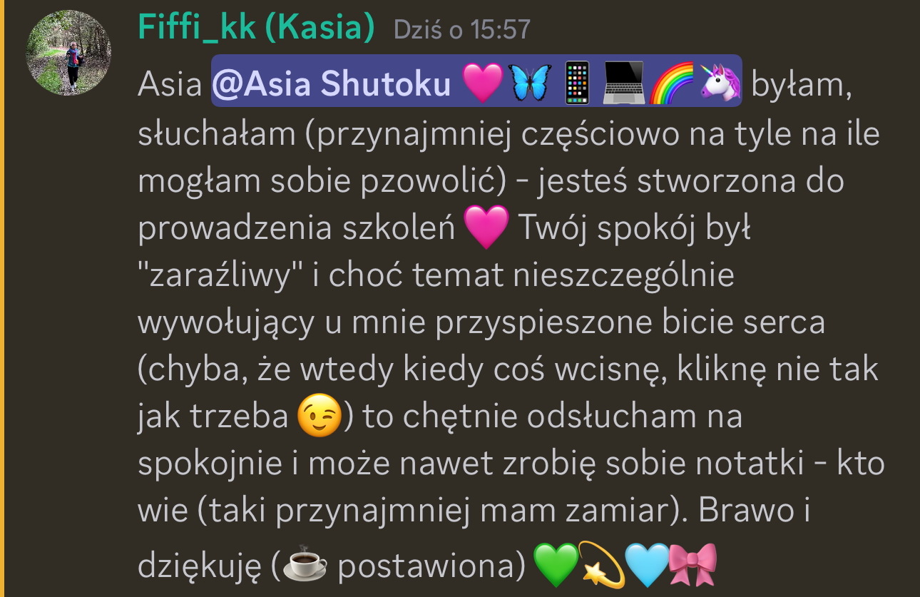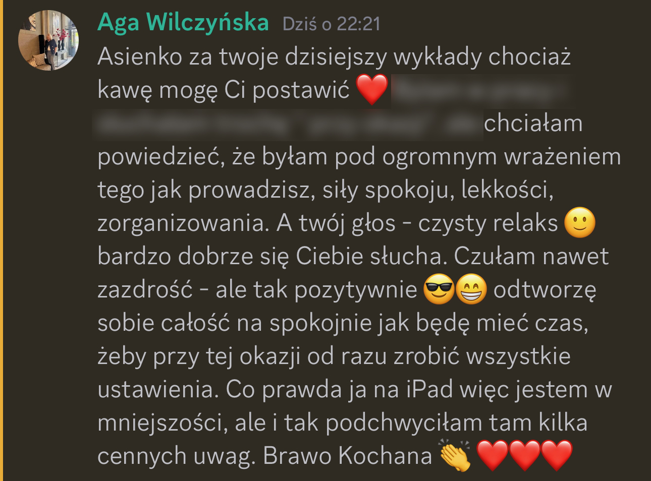 Lubię głębokie rozmowy i odkrywanie nowych ścieżek, które przybliżają mnie i bliskie mi osoby do sedna siebie.
