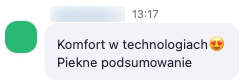 Moje mocne strony to empatia, spokój i analityczny umysł. Potrafię przekładać złożone technikalia i biznes na prosty, zrozumiały język, a w mojej pracy zawsze korzystam z kreatywności i mocy procesów twórczych.