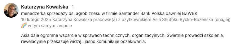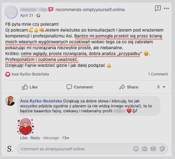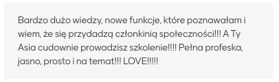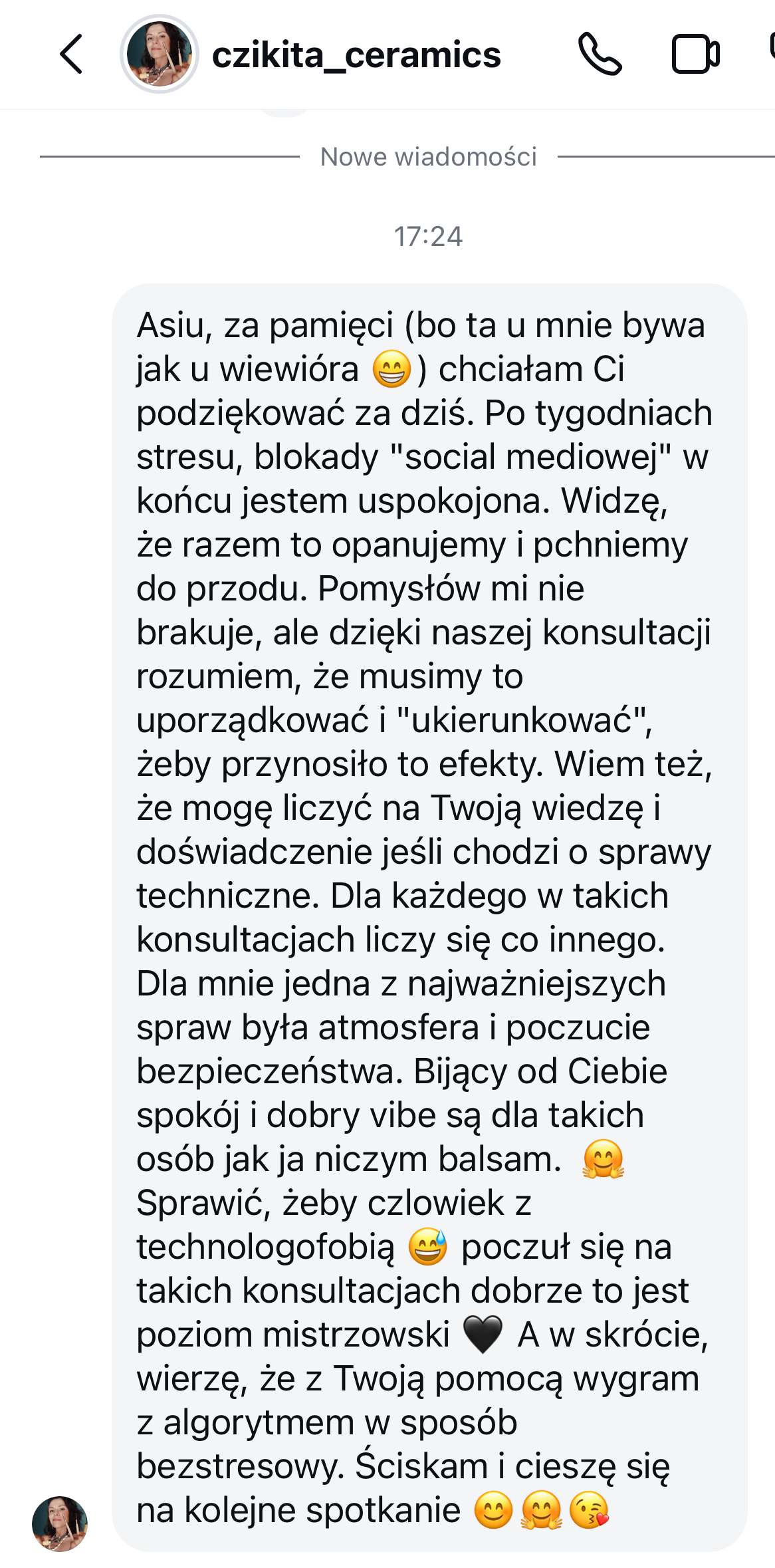 Współpracowałam z setkami osób, pomagając im budować strony internetowe, strategie komunikacji i obecności w mediach społecznościowych oraz wdrażać procesy ułatwiające codzienną pracę.